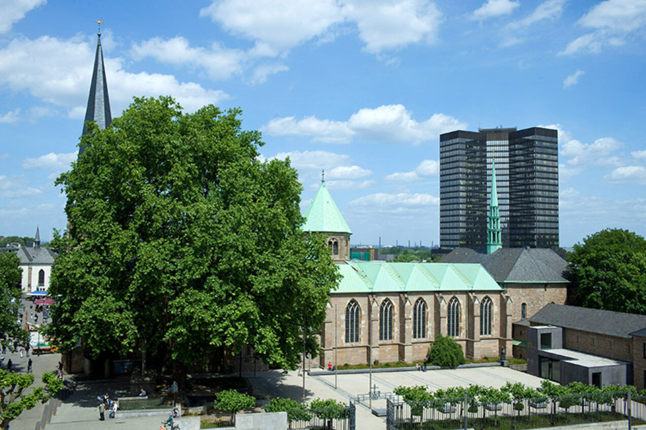 In the vicinity of the College, you will find a wide range of restaurants, snack bars, and cafés catering to various tastes. Several cultural points of interest are in close reach, such as the Grillo theatre, the main library, the Old Synagogue (house of Jewish culture), Essen Cathedral, the city archive, and the historic Lichtburg cinema. You will also find all amenities of a city centre, such as shops, banks, drugstores, and a weekly market.