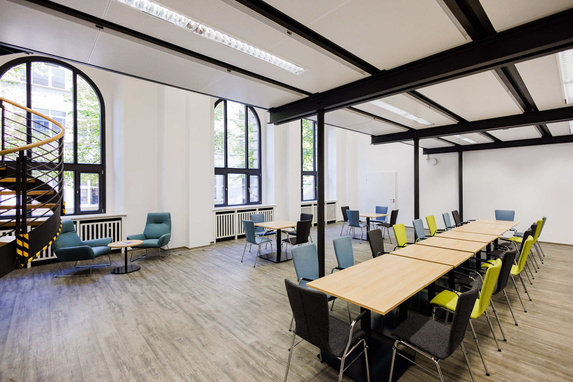 The College for Social Sciences and Humanities is situated in a historic building from the early 20th century in the city centre of Essen. Its close proximity to Essen main station (500 metres) ensures excellent connections to regional transportation and long-distance trains, including frequent service to Dusseldorf airport (40 minutes). A dense local public transport grid connects the city centre to other districts and the campus of the University of Duisburg-Essen.